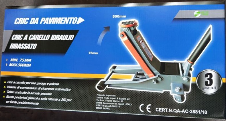 Il cric idraulico a carrello UNITED TRADE garantisce una grande stabilità, le ruote in acciaio sono direzionabili e appoggiate su cuscinetti a sfera. Costruzione in acciaio verniciato, approvato dall'istituto TUV-GS. Il doppio pistone permetterà un utilizzo maggiormente rapido e senza sforzo. Piattino rotante 360°, la sua altezza minima di soli 75mm rendono questo cric tra quelli con il profilo più basso sul mercato. Caratteristiche Tecniche - Portata max (Kg): 3000 - Altezza min - max di sollevamento (mm): 75 - 505 - Dimensioni LxP (mm): 670x350 - Altezza min/max (con manico) (mm): 14,5 - 1250 - Rotazione piattino appoggio: 360° - Valvola sicurezza sopracarico: Si - Numero pistoni: 2. Colori in base alla disponibilita' di magazzino: Grigio/Arancio, Blue/Giallo, Rosso/Nero, Grigio/Giallo.