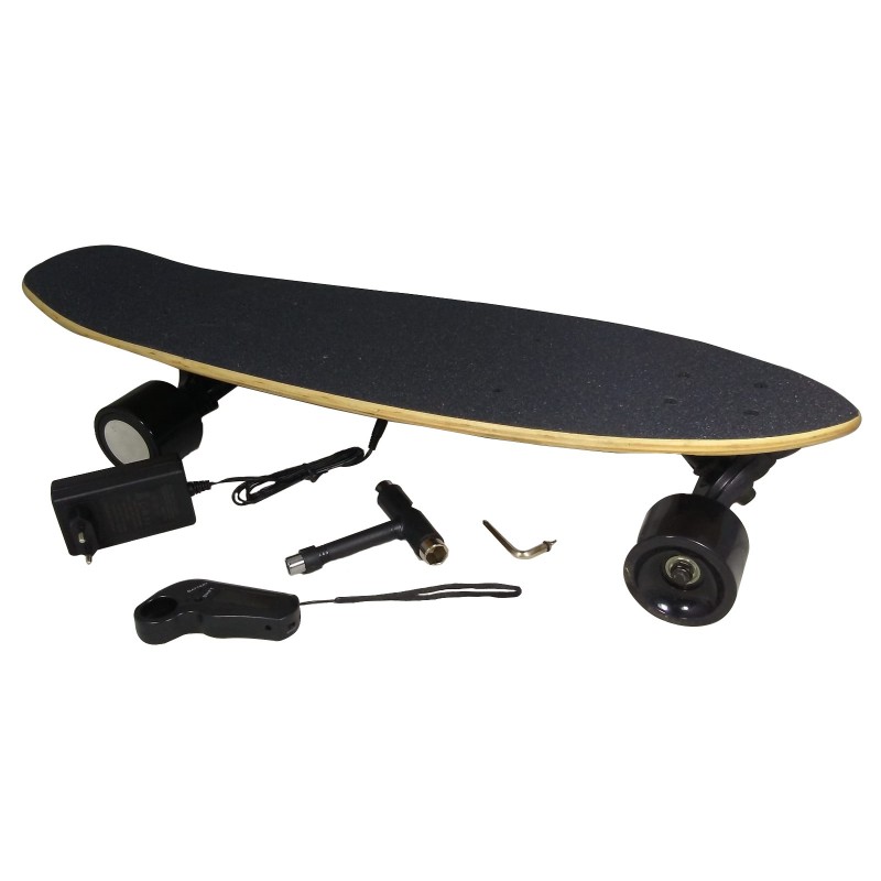 Piccolo, leggero e veloce, adatto a bambini e ragazzi, è il mezzo di trasporto ideale per muoversi con stile e nel rispetto dell'ambiente. Tutta la qualità di United Trade concentrata in formato mini: tavola in legno di acero canadese resistente e flessibile, un potente ed affidabile motore brushless da 100 Watt e ruote all'altezza di qualsiasi percorso. Fino a 15 km di autonomia, con una velocità massima di 18 km/h. Facile da guidare grazie al telecomando senza fili, con indicatori led per lo stato di carica della batteria e del telecomando, per non restare mai a piedi. Specifiche tecniche: autonomia: 15 km; pendenza max: 25%; peso max: 60 kg; materiale tavola: acero canadese; capacità batteria: 2150mAh; tipo batteria: iIoni di litio (Li-Ion); alta efficienza peso batteria: 370; tempo ricarica: 1,5 ore; vita attesa: 500 cicli; motore: Brushless 150W; velocità max: 18 km/h; materiale Ruote: PU; telecomando: Bluetooh Low-Energy; freno: elettronico rigenerativo; certificati: CE, RoHS, FCC, UN38.3.
