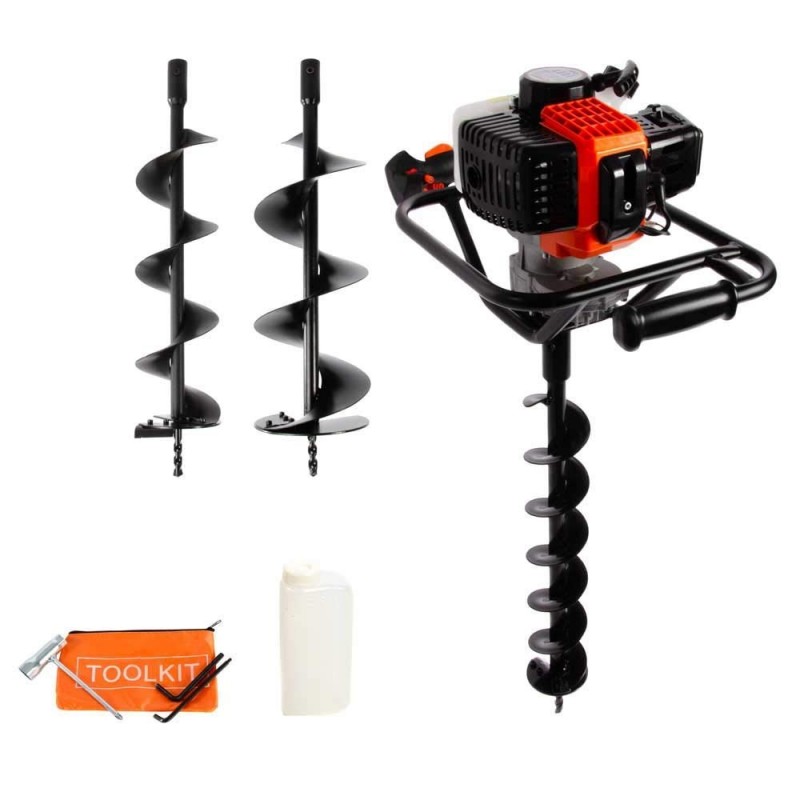 La mototrivella a scoppio con motore da 52 cc UNITED TRADE può essere maneggiata e utilizzata coprendo una vasta gamma di attività di perforazione come la piantumazione di alberi, costruzione di strade e installazioni di recinti. Progettata per una visione ergonomica, la maniglia ha un rivestimento antivibrazione, è facile quindi maneggiarla, e allo stesso tempo è molto precisa. Viene fornita con 3 punte a terra in ferro, ,1 flacone e 1 set di attrezzi. Caratteristiche tecniche: Diametro punte: 100 mm / 150 mm / 200 mm Lunghezza trapano80 cm Potenza massima2,2 kW / 6500 giri / min Tipo di motore Monocilindrico, 2 tempi, raffreddamento ad aria Cilindrata52cc Velocità della coclea170 - 200 giri / min Capacità del serbatoio del carburante0,9 L Rapporto misto carburante40: 1 Sistema di raffreddamento Aria forzata Sistema di avvioInizio rinculo